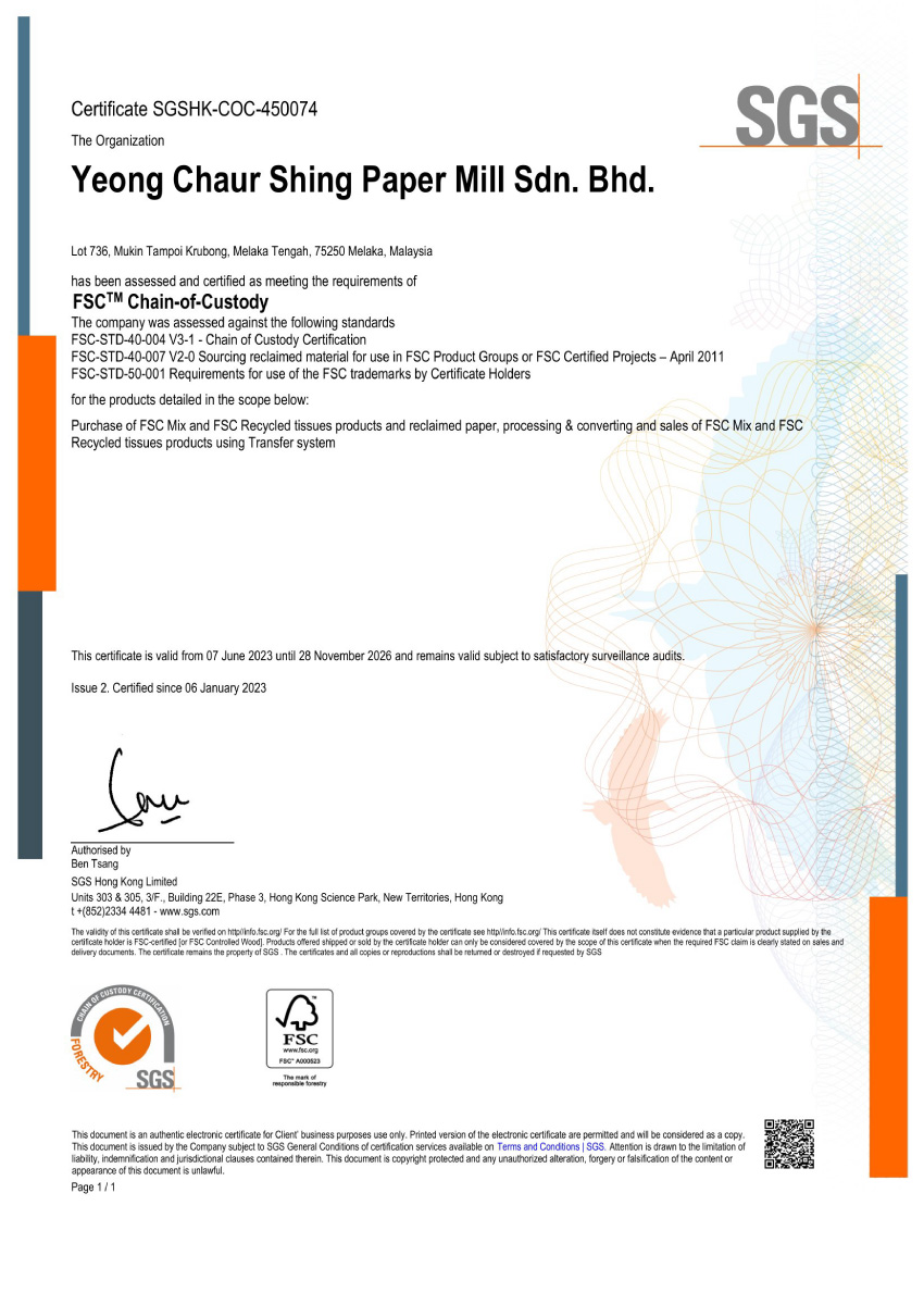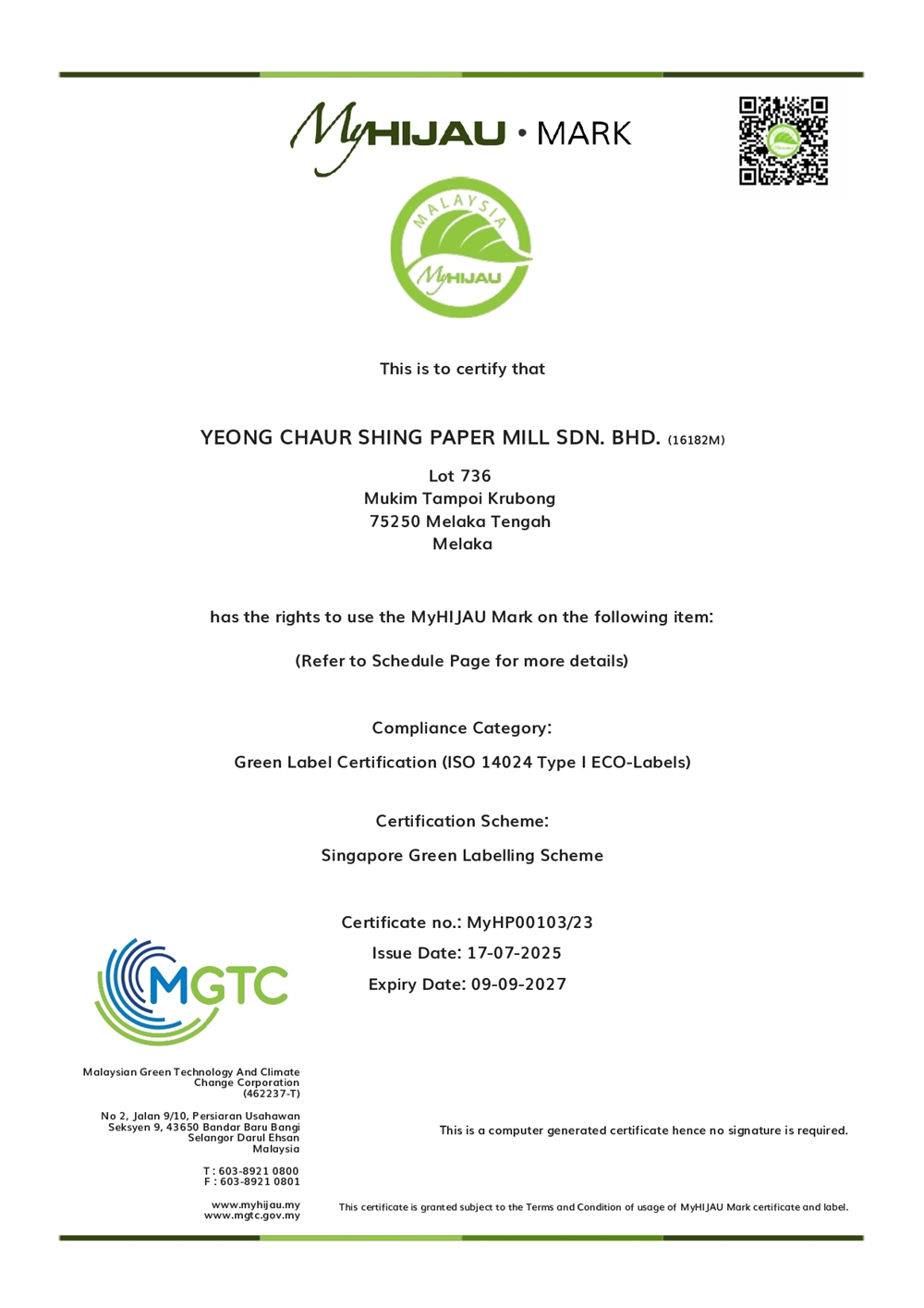 YCS Products is strictly comply to many high standard certificates to encourage greater peace of mind to our customer that our product is of highest quality and to meet the industrial benchmarks.